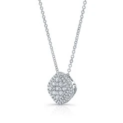 Cushion Diamond Solitaire Pendant In A Platinum 4-prong Leaf Scroll Setting, 3ct. T.w. (hi, Si1-si2)