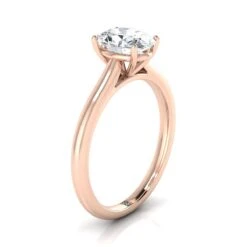 14K Rose Gold Oval Pink Sapphire Pinched Comfort Fit Claw Prong Solitaire Engagement Ring