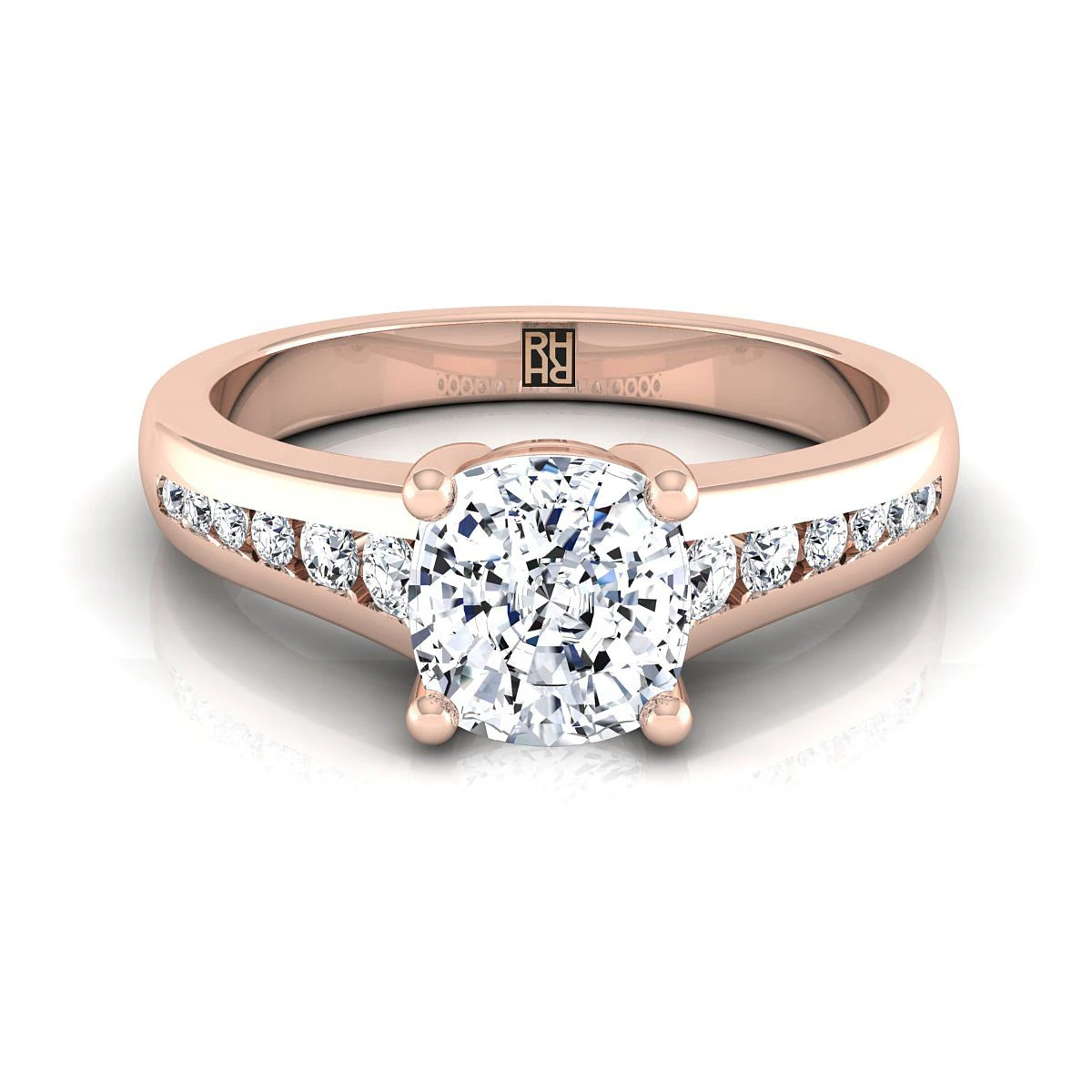 14K Rose Gold Cushion Contemporary Tapered Diamond Channel Engagement Ring -1/6ctw