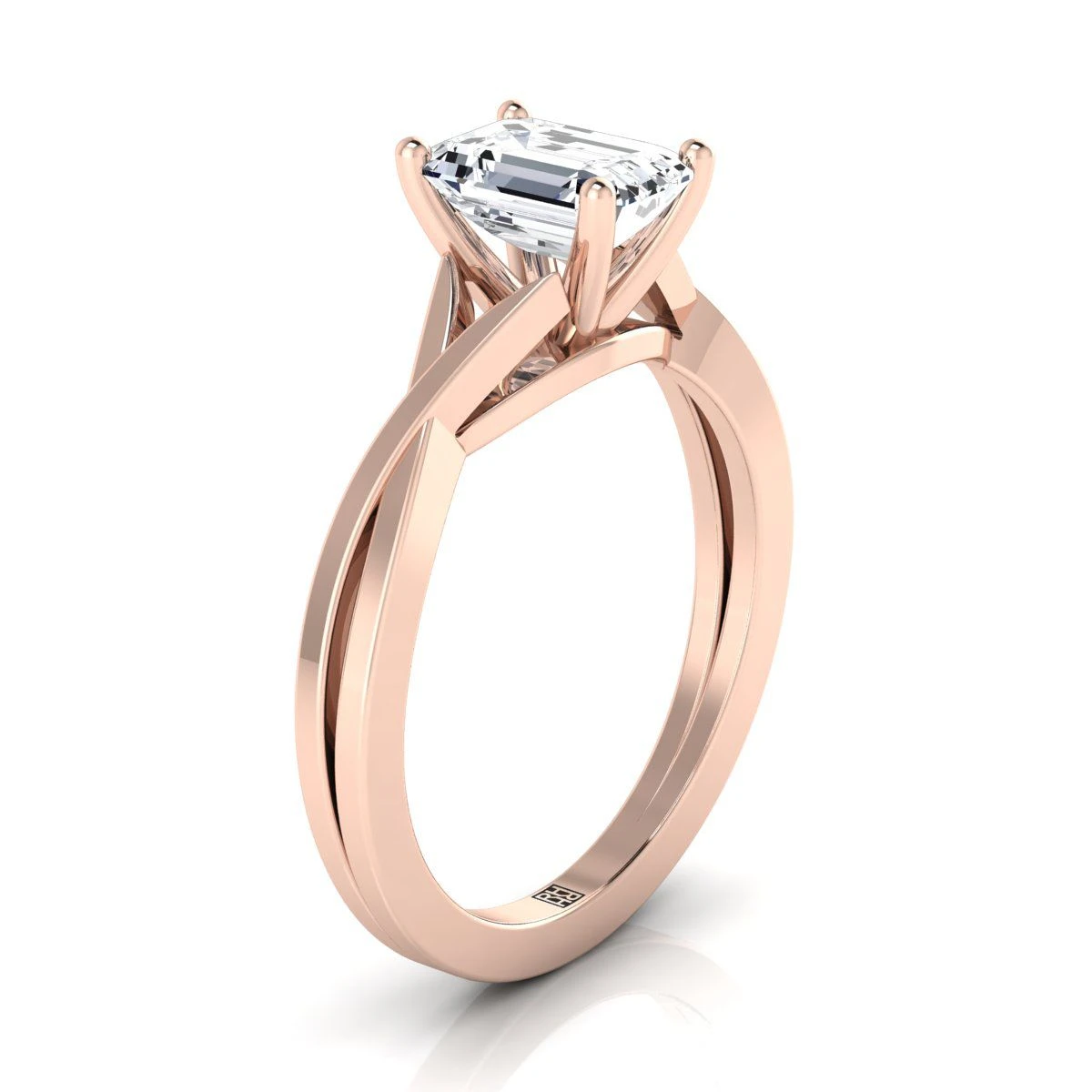 14K Rose Gold Emerald Cut Delicate Twist Solitaire Engagement Ring