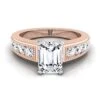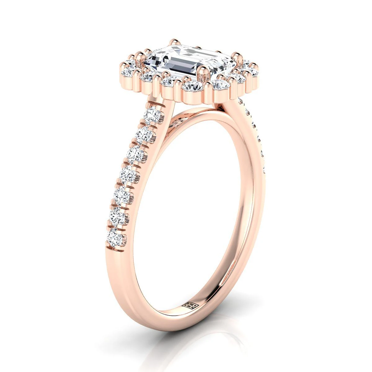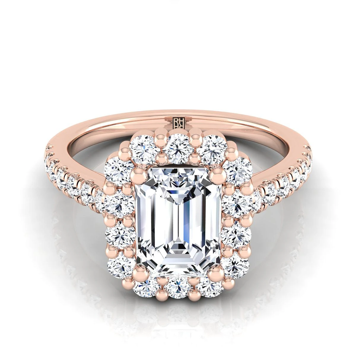14K Rose Gold Emerald Cut Diamond Shared Prong Halo Engagement Ring -5/8ctw