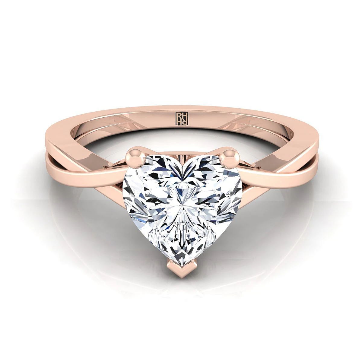 14K Rose Gold Heart Shape Center Delicate Twist Solitaire Engagement Ring