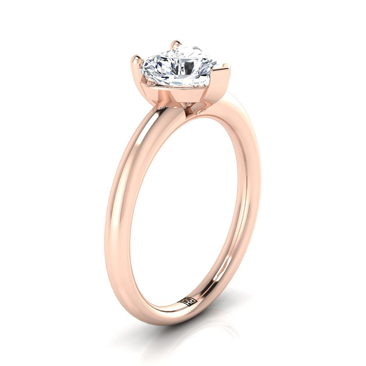 14K Rose Gold Heart Shape Center Rounded Comfort Fit Solitaire Engagement Ring