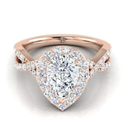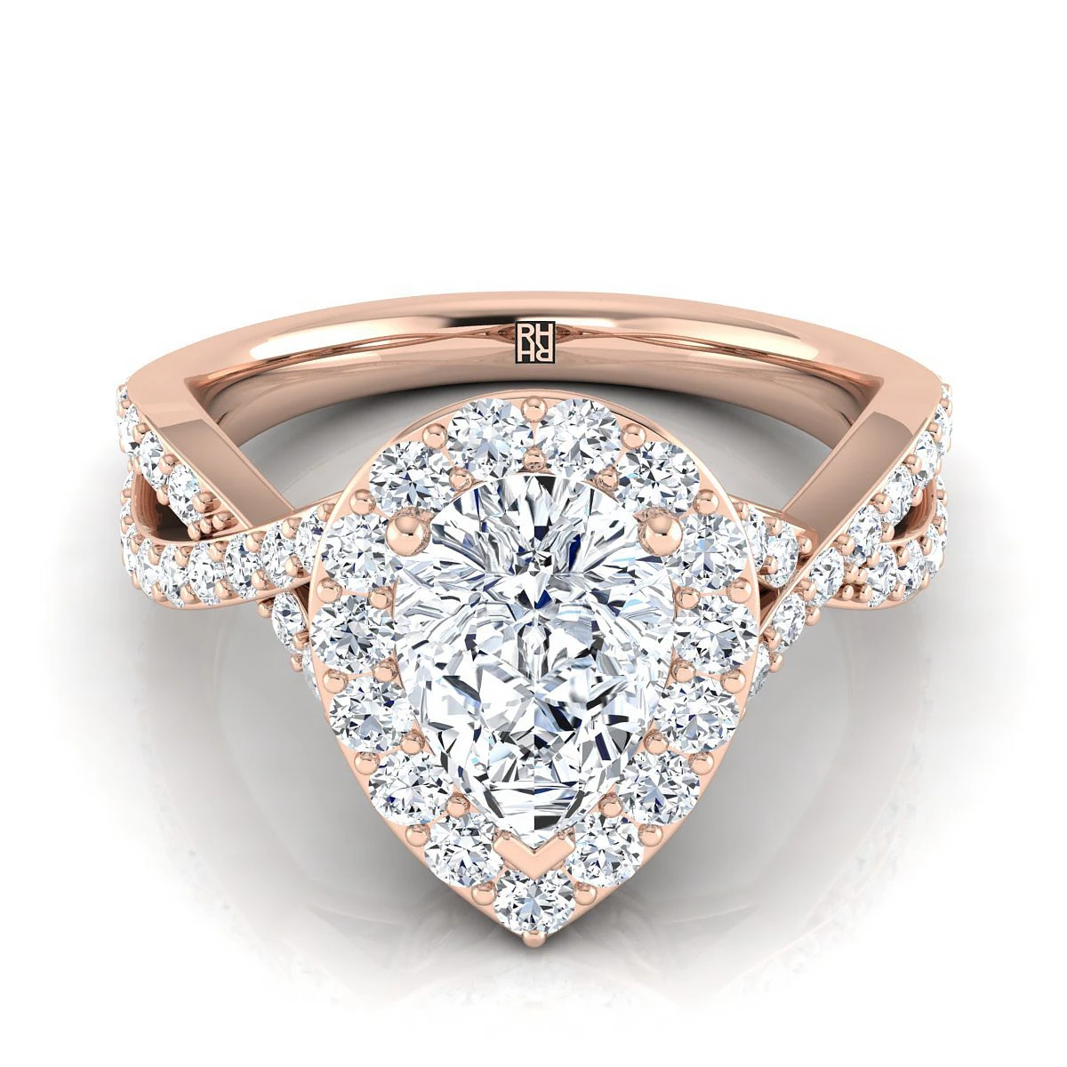 14K Rose Gold Pear Shape Center Twisted Open Lattice Diamond Halo Engagement Ring -3/4ctw