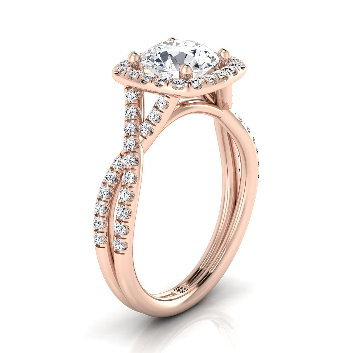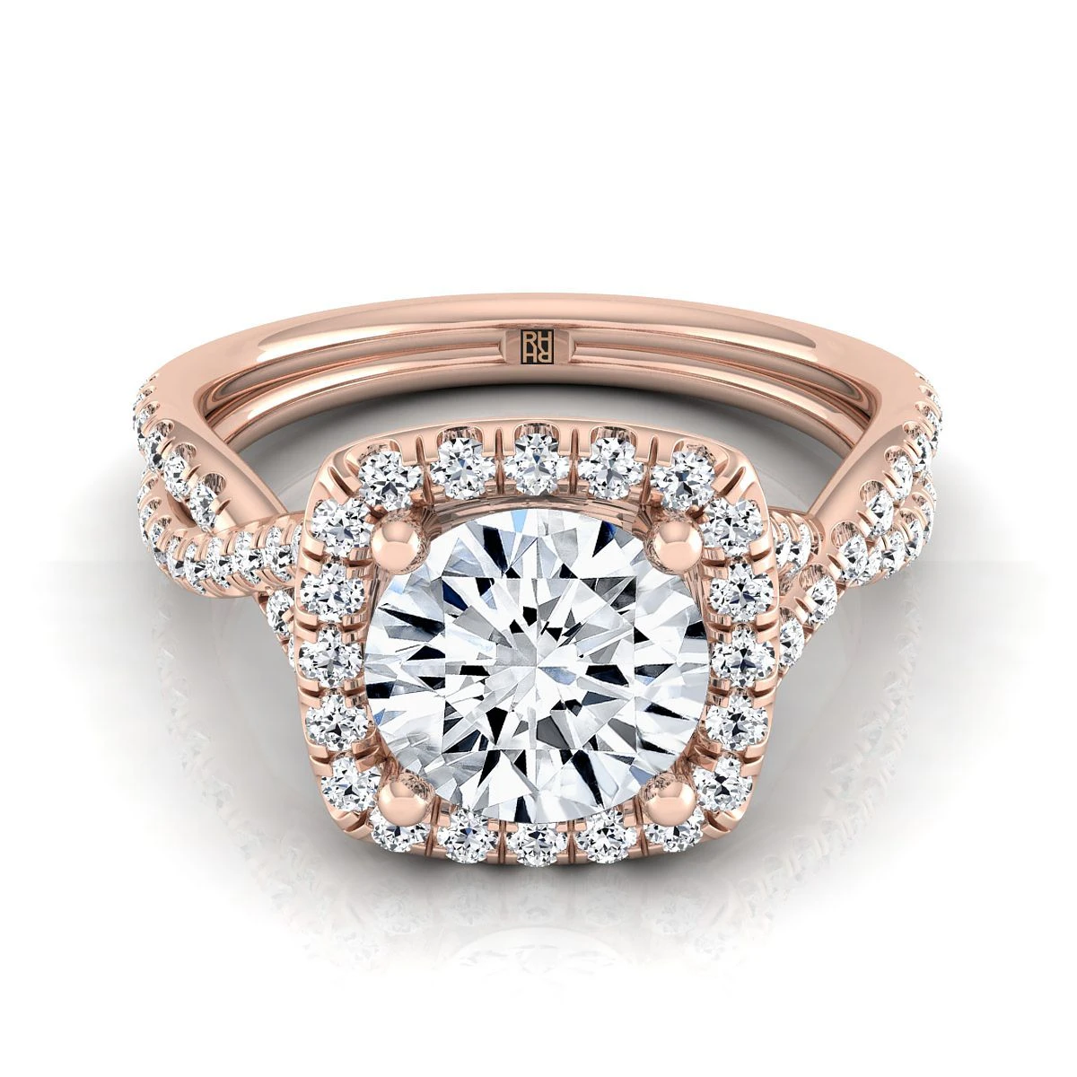 Classic With A Bold Twist, This Diamond Square Halo With Twisted Pave Shank Ring Showcases Brilliant Cut Diamonds (h-i/vs 0.45ctw) Beautifully Set In A Classic 14k Rose Gold Setting.