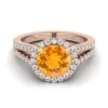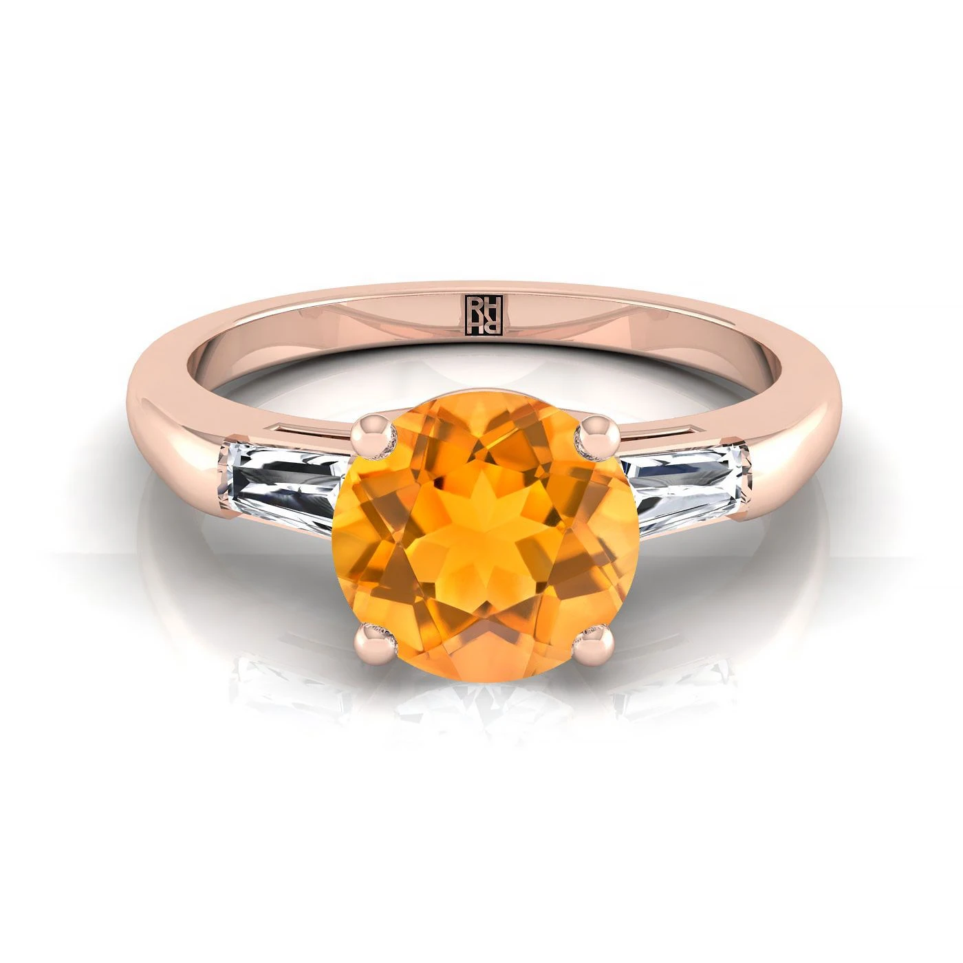 14k Rose Gold Engagement Ring With 6 Mm Round Citrine Center Stone And 2 Tapered Baguettes Weighing 0.18ctw