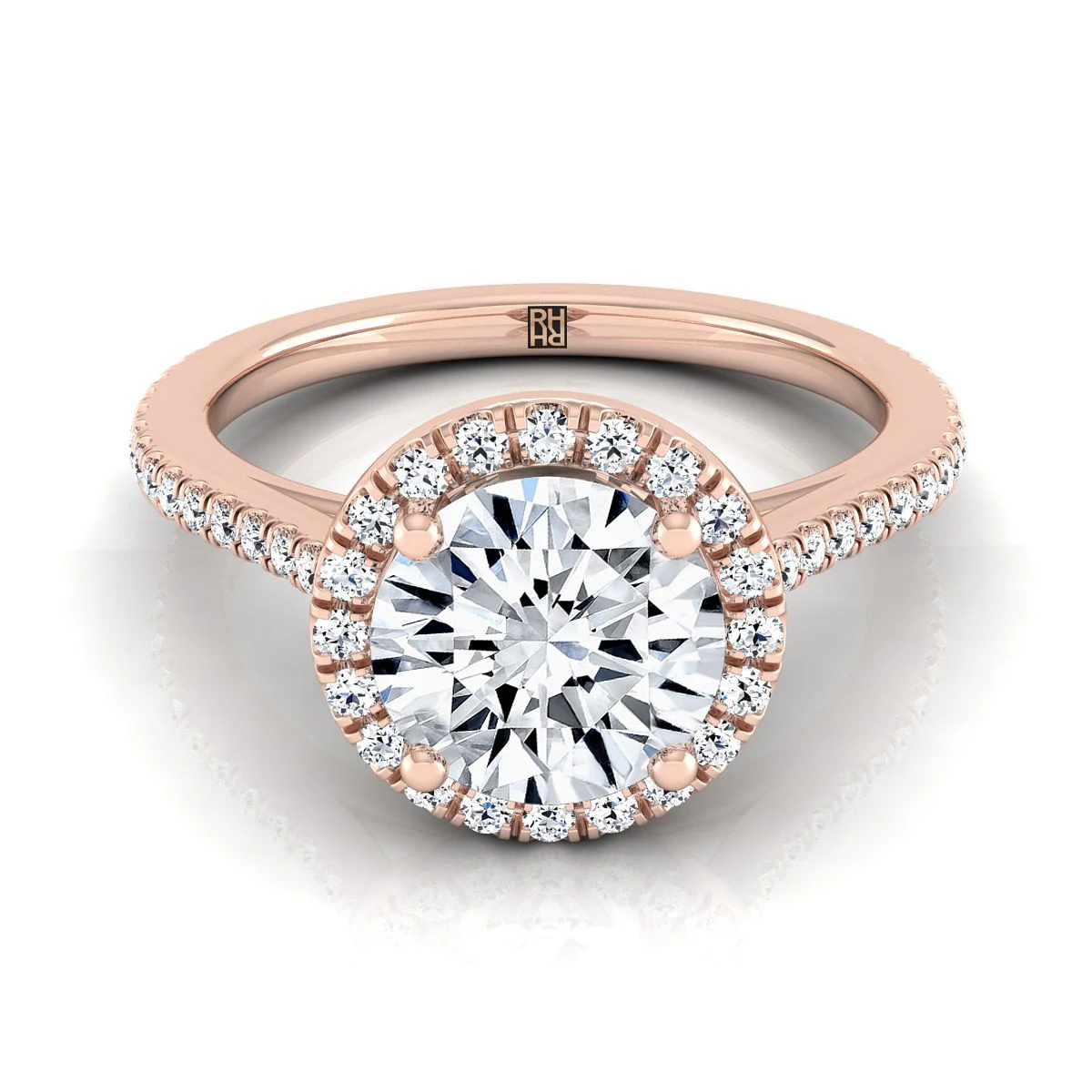 14K Rose Gold Round Brilliant Classic French Pave Halo And Linear Engagement Ring -1/4ctw