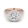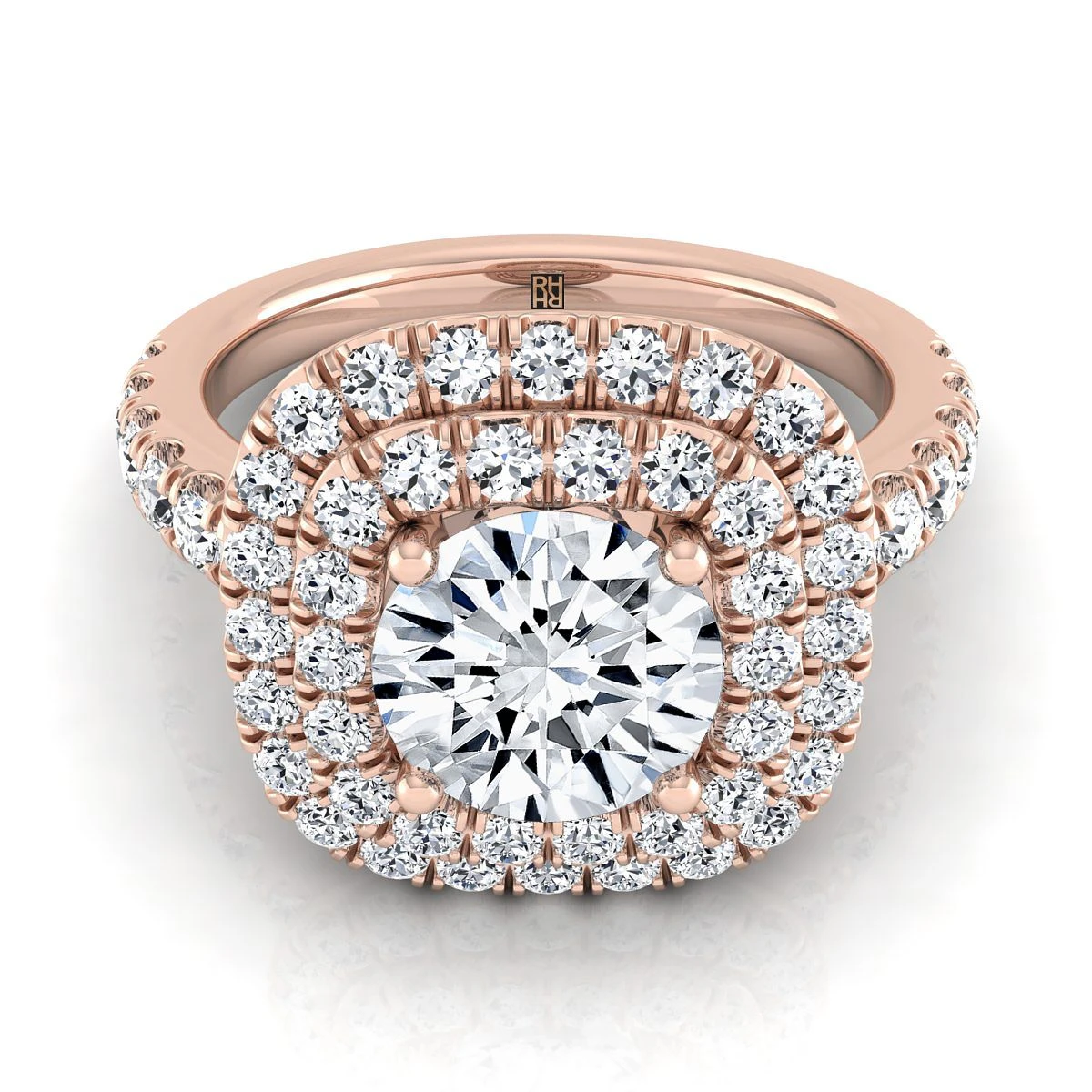14K Rose Gold Round Brilliant Diamond Double Halo French Pave Engagement Ring -1.00ctw