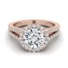 An Elegant Statement Of Style, This Diamond Halo Engagement Ring With Scroll Design Shank Showcases Brilliant Cut Diamonds (h-i/vs 0.55ctw) Set In A 14k Rose Gold Setting.