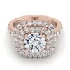 14K Rose Gold Round BrilliantBeveled Edge Comfort Style Bright Finish Solitaire Engagement Ring