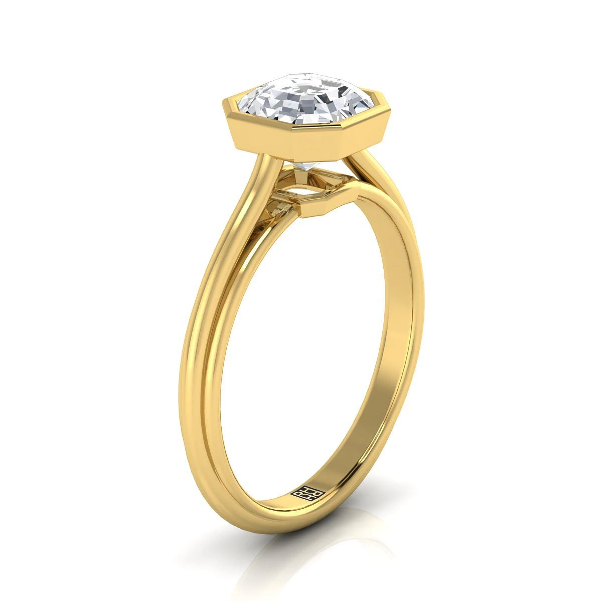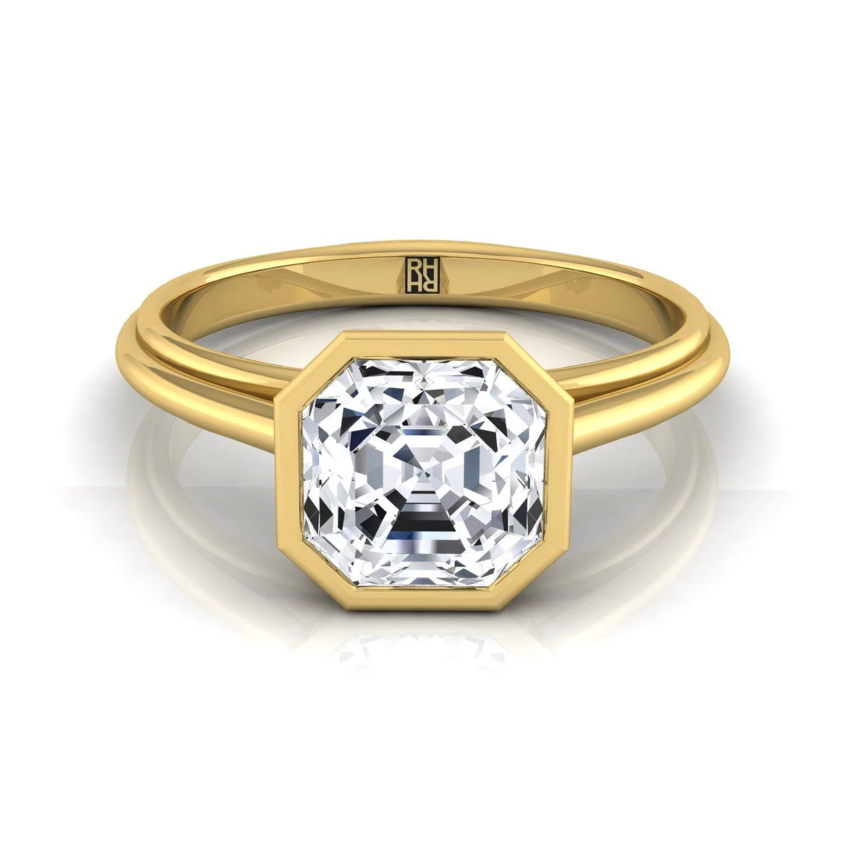 Understated Elegance, This Asscher Cut Diamond Engagement Ring Setting Showcases A Bezel Set Diamond Solitaire In A Classic 14k Yellow Gold Setting.