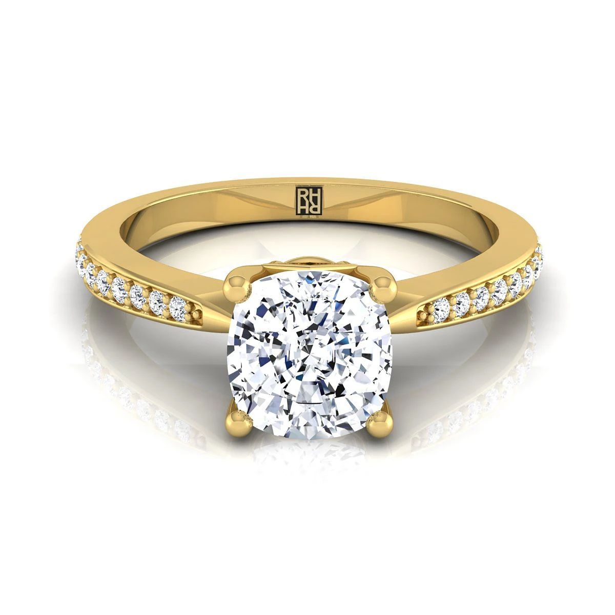 14K Yellow Gold Cushion Diamond Tapered Pave Engagement Ring -1/8ctw
