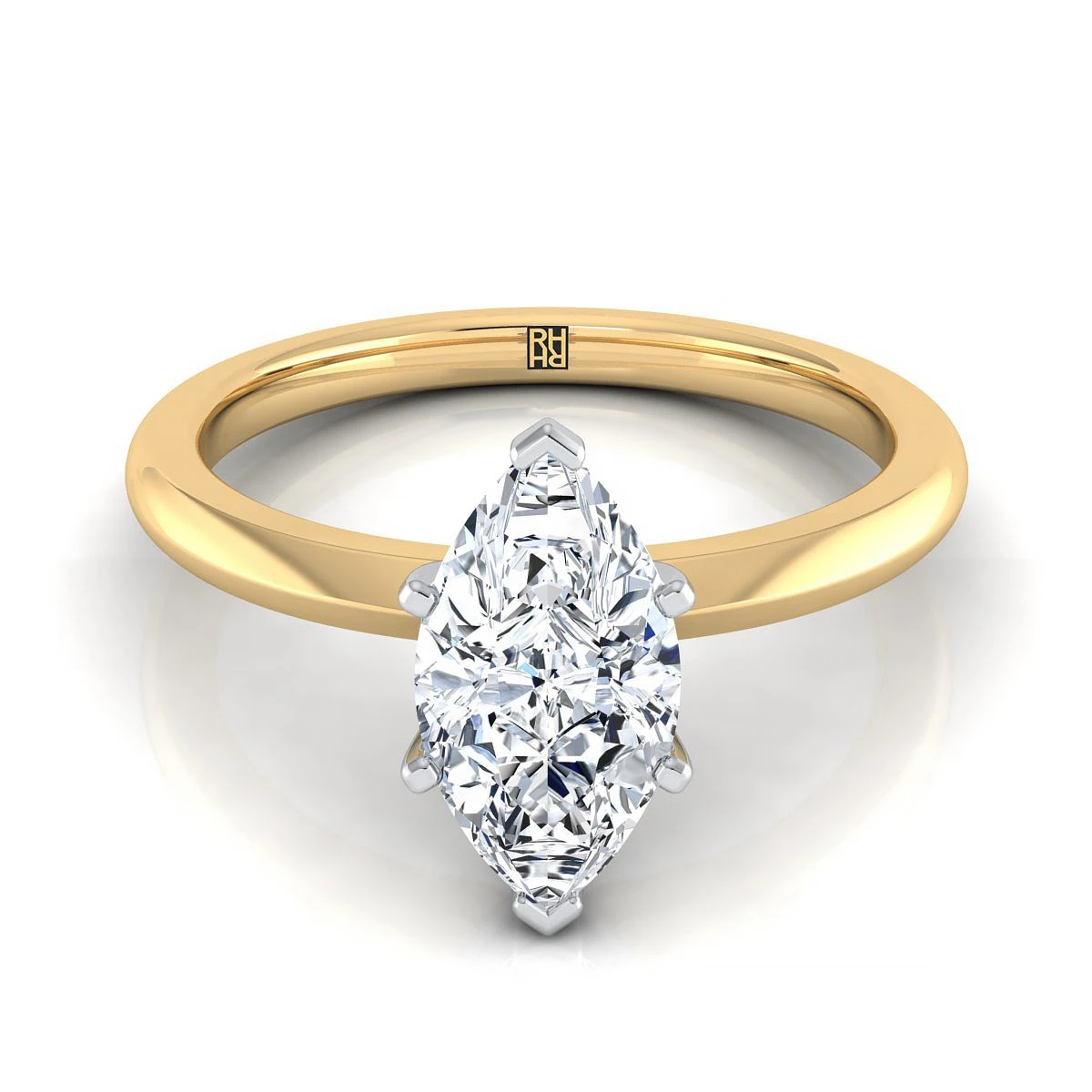 A Classic Statement Of Style, This Marquise Solitaire Engagement Ring Showcases A Modern Knife Edge Shank And 6 Prong Center Setting In 14k Yellow Gold