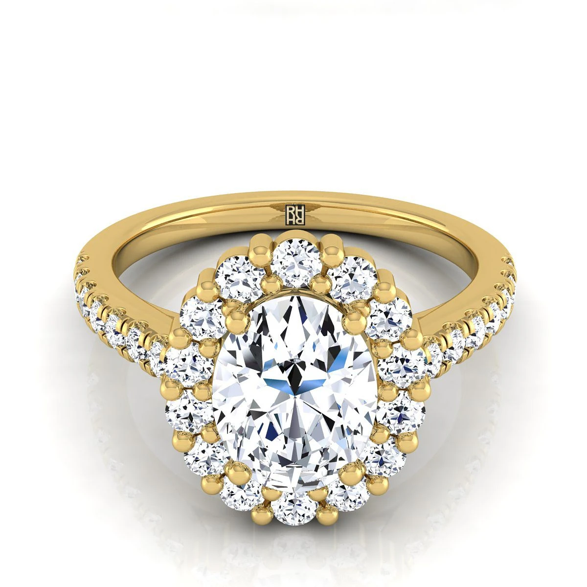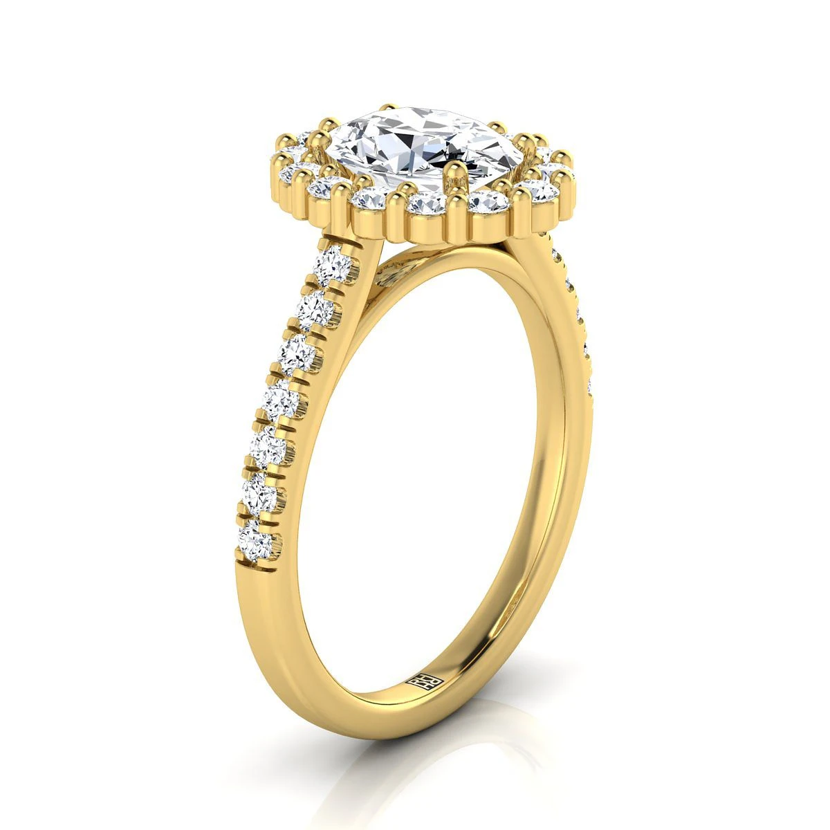 14K Yellow Gold Oval Diamond Shared Prong Halo Engagement Ring -5/8ctw