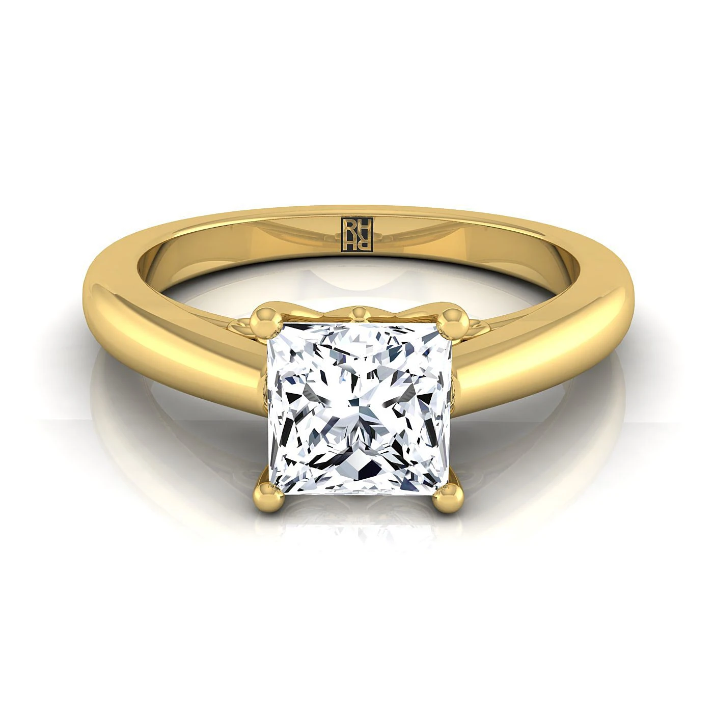 14K Yellow Gold Princess Cut Scroll Gallery Comfort Fit Solitaire Engagement Ring