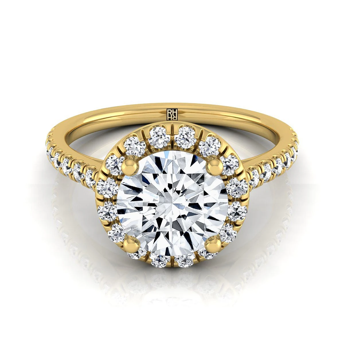 14K Yellow Gold Round Brilliant Classic French Pave Halo And Linear Engagement Ring -3/8ctw