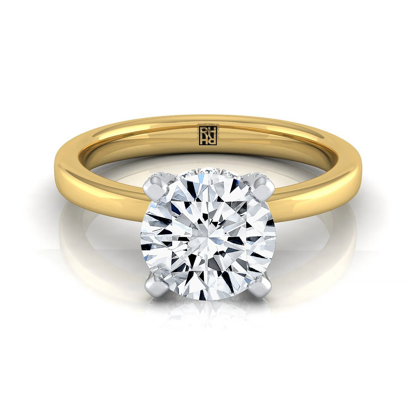 14K Yellow Gold Round Brilliant Diamond Hidden Pave Basket Crown Solitaire Engagement Ring -1/10ctw