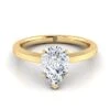 18K Yellow Gold Round Brilliant Diamond Simple French Pave Double Claw Prong Engagement Ring -1/6ctw