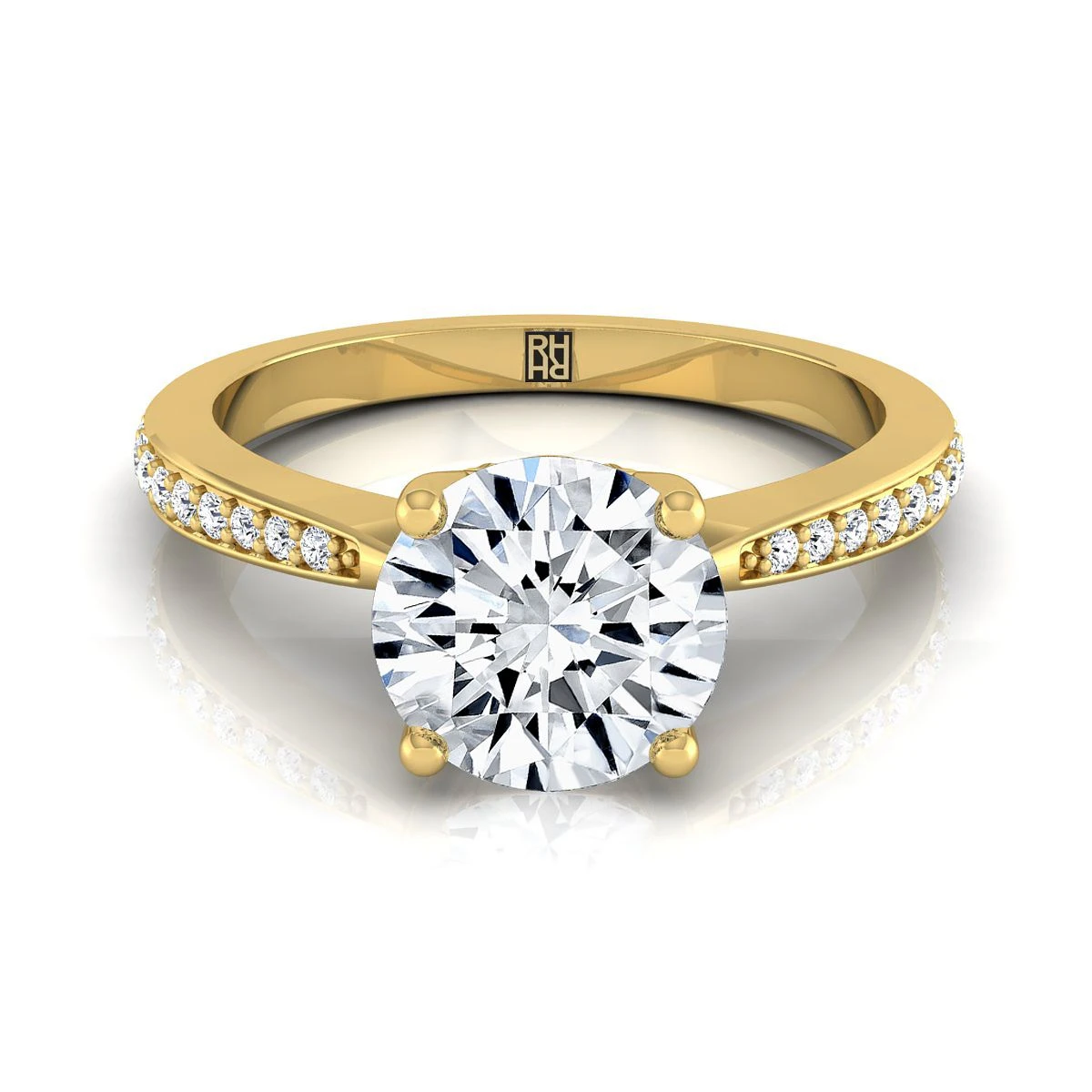 14K Yellow Gold Round Brilliant Diamond Tapered Pave Engagement Ring -1/8ctw