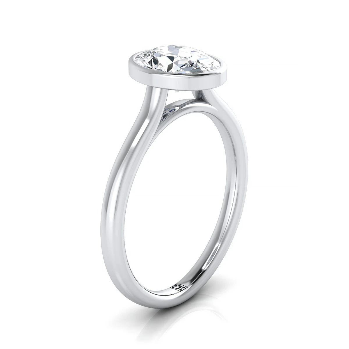 18K White Gold Oval Swiss Blue Topaz Simple Bezel Solitaire Engagement Ring