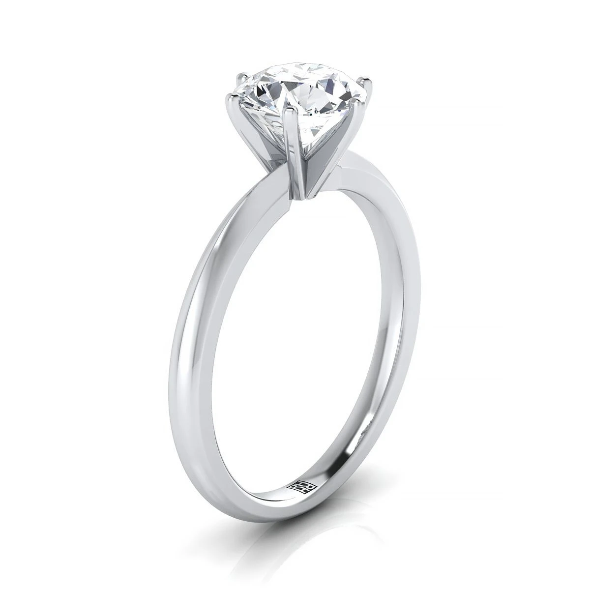18K White Gold Round Brilliant Sapphire Pinched Comfort Fit Claw Prong Solitaire Engagement Ring