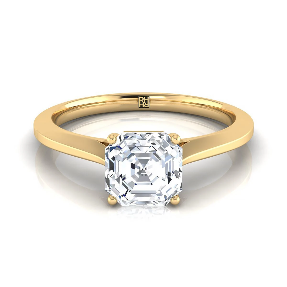 18K Yellow Gold Asscher CutTimeless Solitaire Comfort Fit Engagement Ring