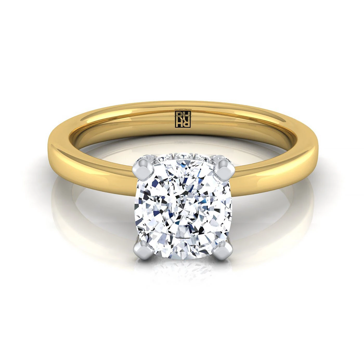Be the first to review “18K Yellow Gold Cushion Diamond Hidden Pave Basket Crown Solitaire Engagement Ring -1/10ctw” Cancel reply