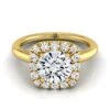 18K Yellow Gold Cushion Diamond Secret Diamond Halo French Pave Solitaire Engagement Ring -1/3ctw