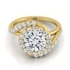 18K Yellow Gold Cushion Prong Set Sapphire Split Shank Engagement Ring