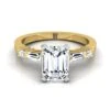 18K Yellow Gold Emerald Cut Contemporary Tapered Diamond Channel Engagement Ring -1/6ctw