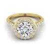 18K Yellow Gold Oval Diamond Shared Prong Halo Engagement Ring -1/5ctw