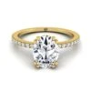 18K Yellow Gold Princess Cut Diamond Twist French Pave Double Halo Diamond Engagement Ring -1/2ctw