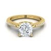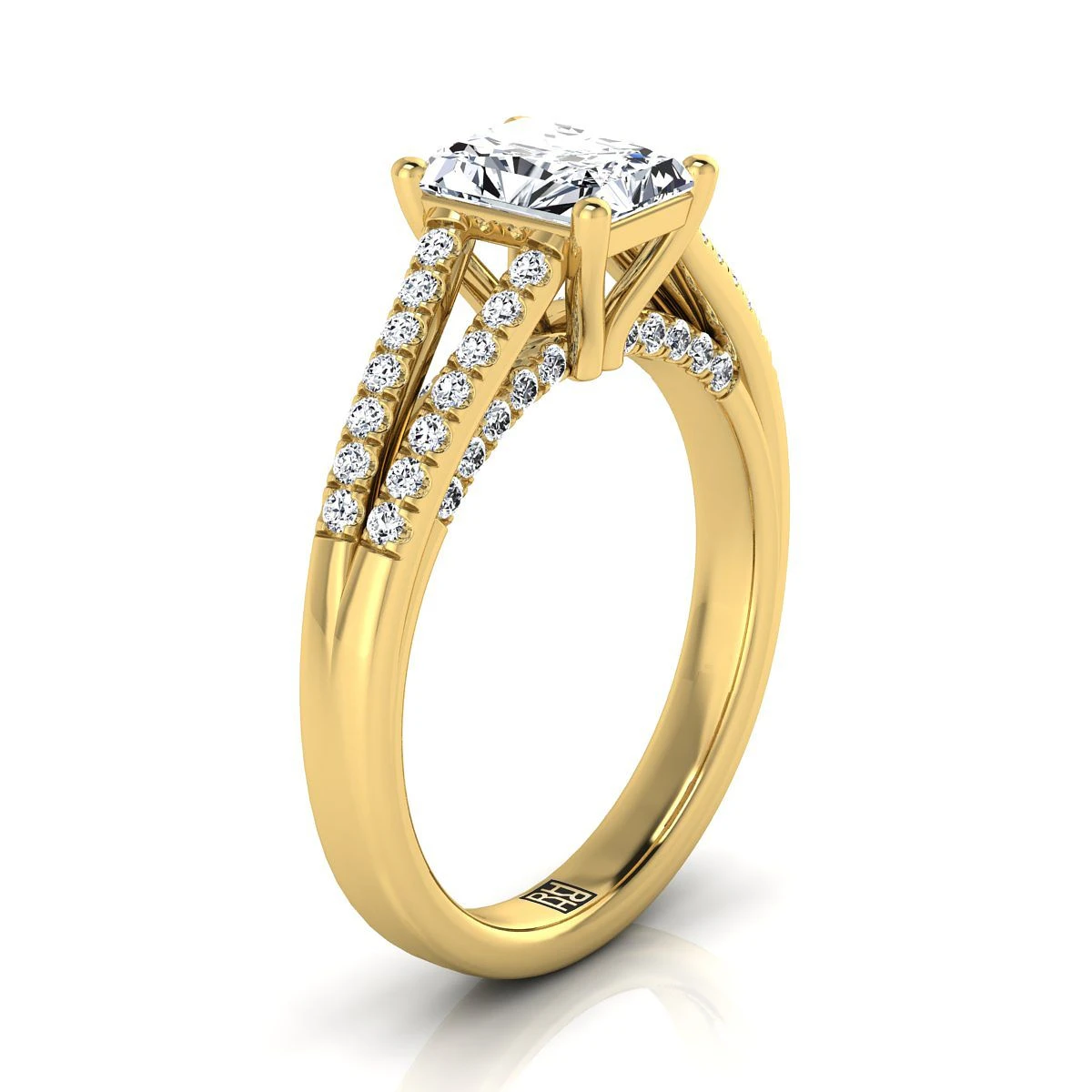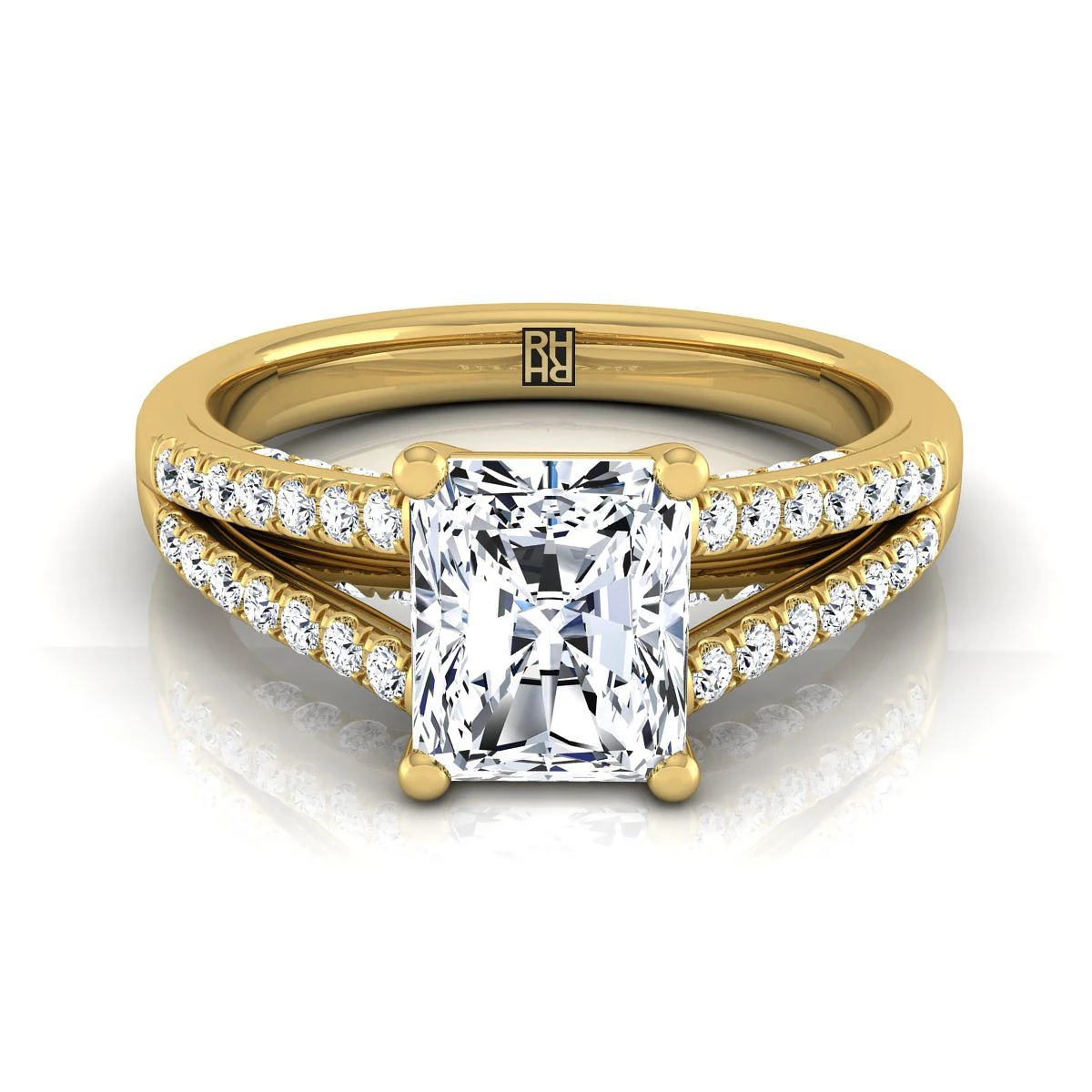 18K Yellow Gold Radiant Cut Center Diamond Split Shank French Pave Engagement Ring -1/3ctw