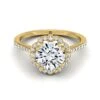 Classic And Elegant, This Diamond Halo Engagement Ring With A Pave Shank Showcases Brilliant Cut Diamonds (h-i/vs 0.45ctw) Beautifully Set In A Classic 18k Yellow Gold Setting.