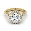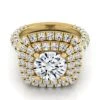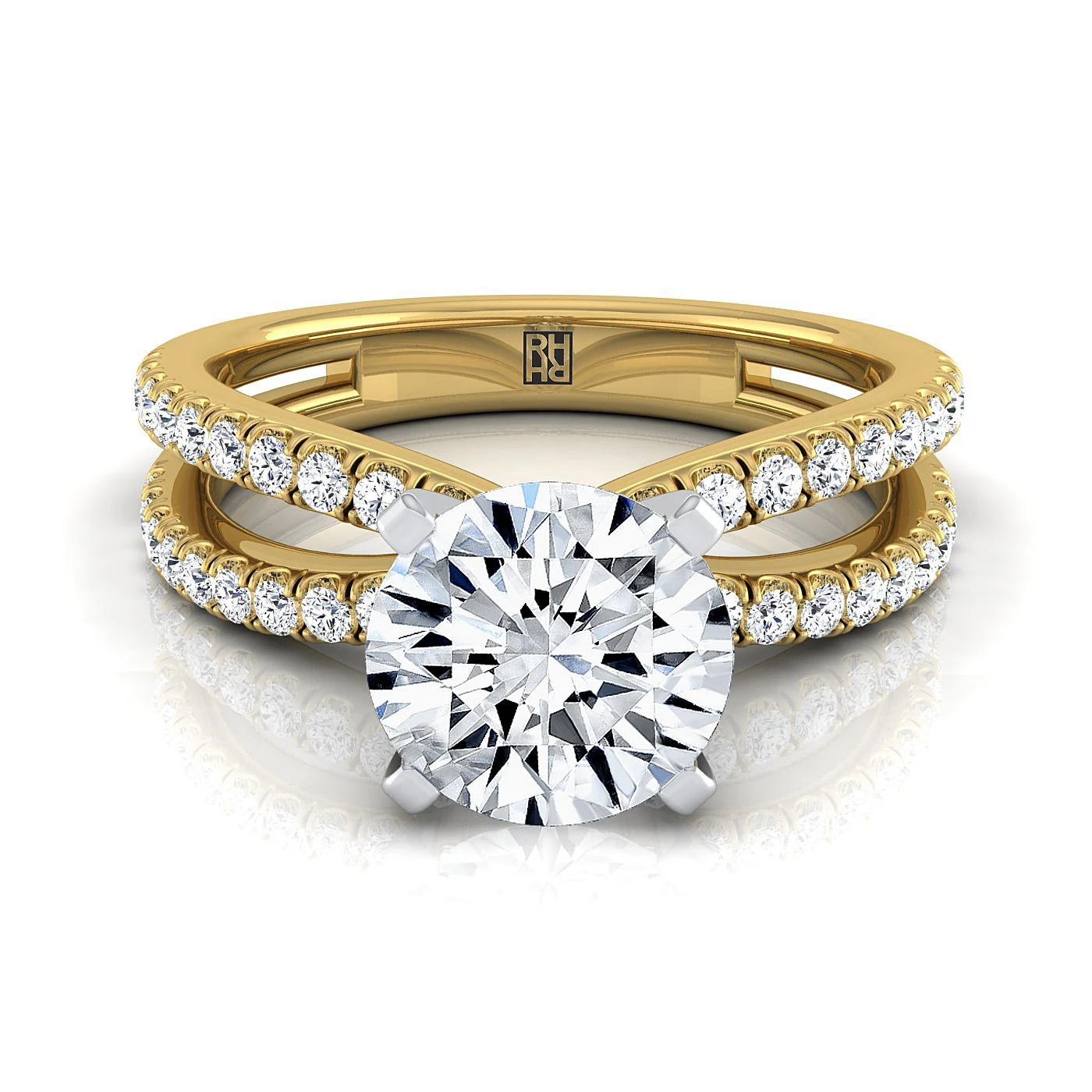 18K Yellow Gold Round Brilliant Diamond Two Row Pavé Split Shank Engagement Ring -1/3ctw