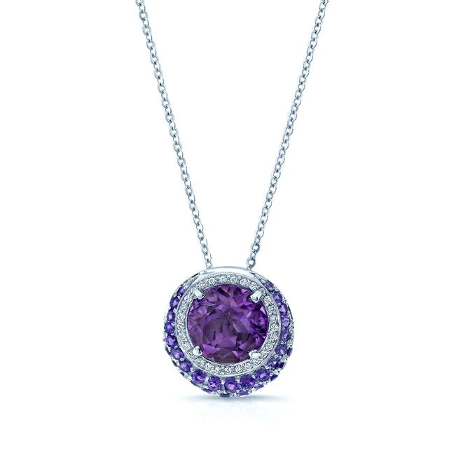 Be the first to review “Amethyst And Diamond Halo Pendant With Crescent Color Accent In 14k White Gold” Cancel reply