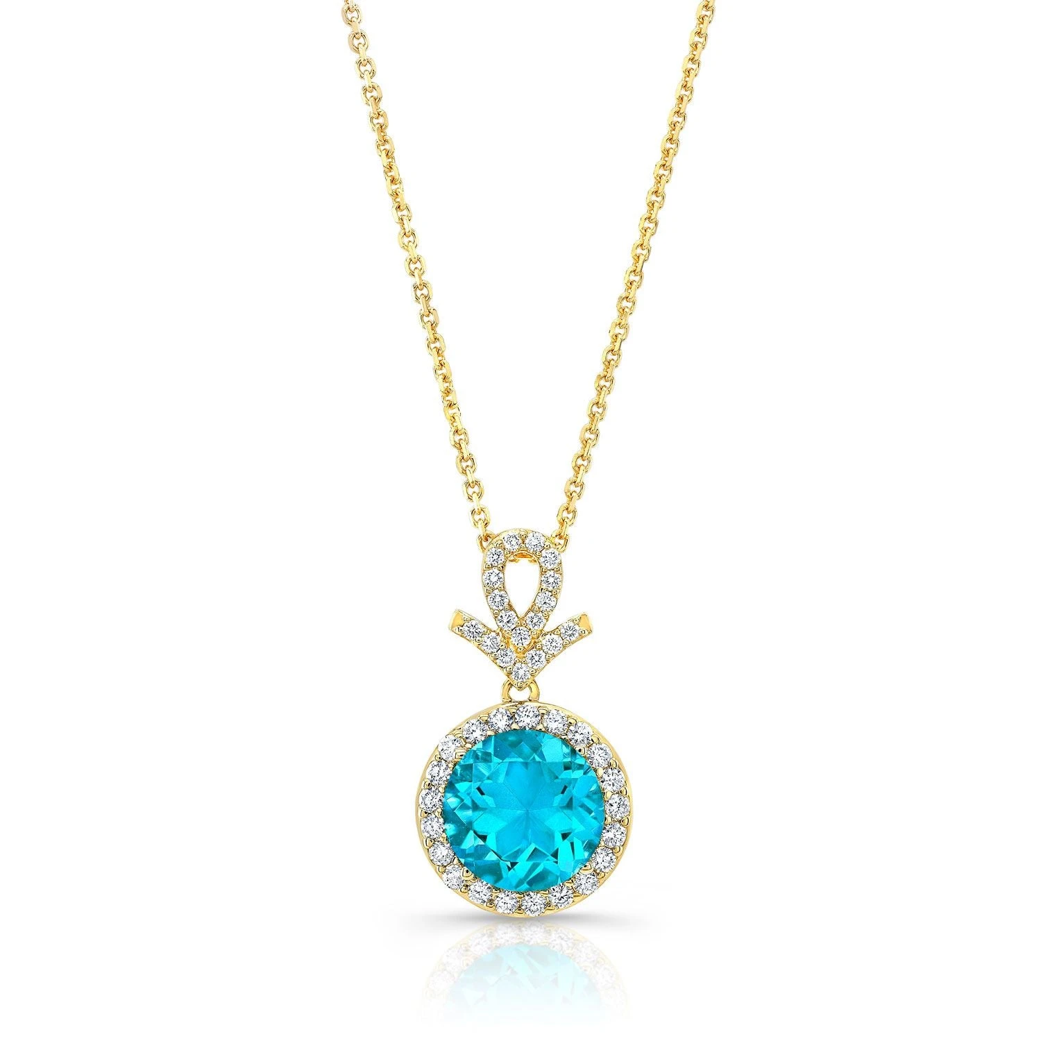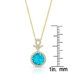 Be the first to review “Blue Topaz And Diamond Pave Halo Pendant In 14k Yellow Gold” Cancel reply