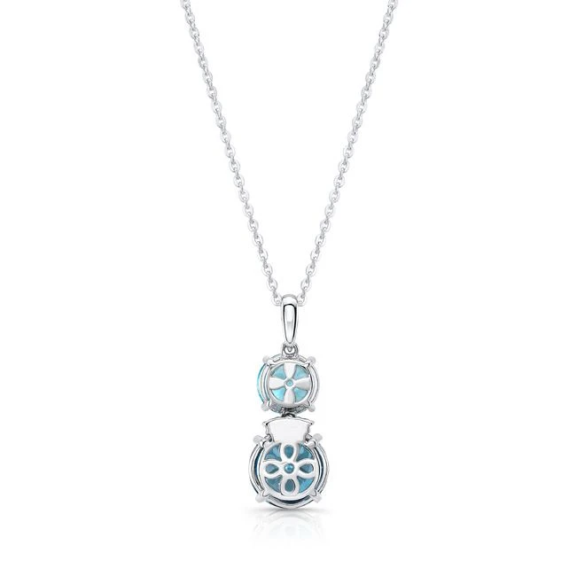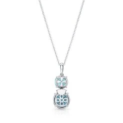 14k White Gold Pendant With 1 Round London Blue Topaz 9mm, 1 Round Swiss Blue Topaz 7mm And 4 Round Brilliant Diamond 0.02ctw On An Adjustable 16-18 Inch Rolo Chain