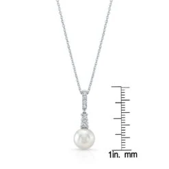 Cultured Pearl And Diamond Pendant With Graduated Prong-set Bail In 14k White Gold (8.0-8.5mm) (si)