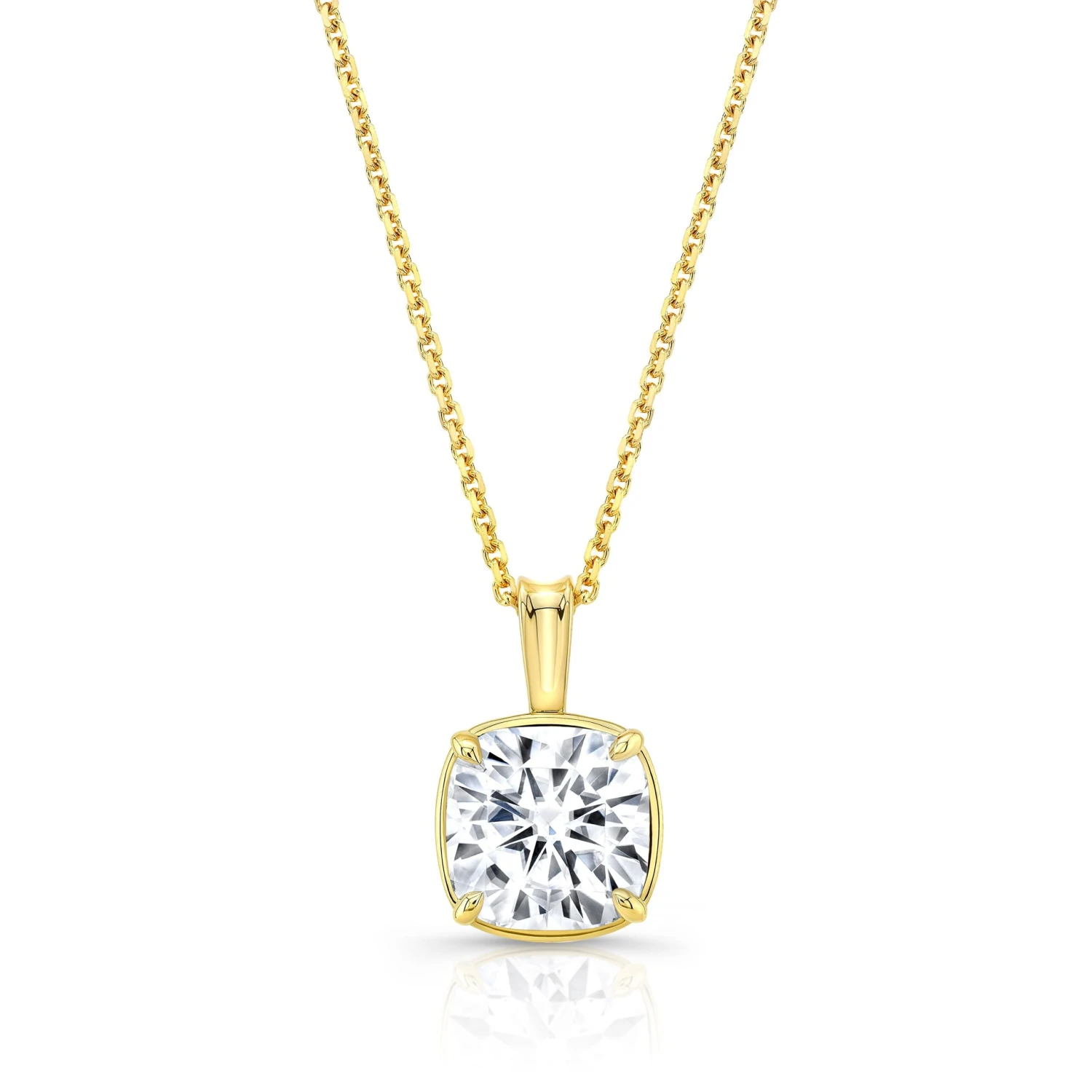 14k Yellow Gold Solitaire Pendant With 1 Cushion Shape Diamond Weighing 3.0 Carat On A 16 Inch Curb Chain