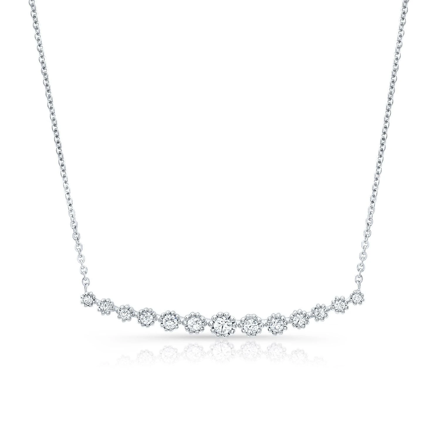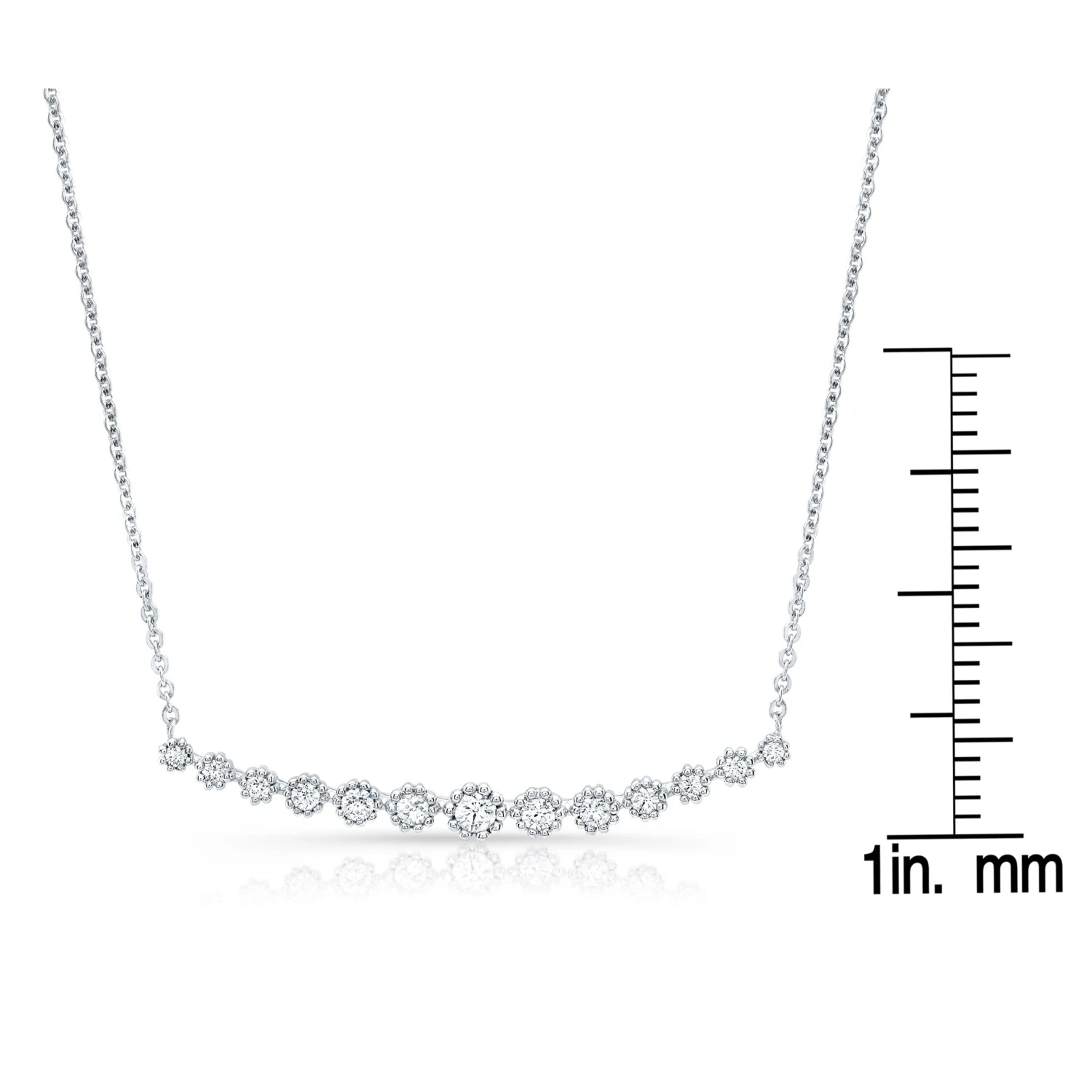 Diamond 13-stone Floral Millgrained Necklace In 14k White Gold (1/3 Ct.tw.)