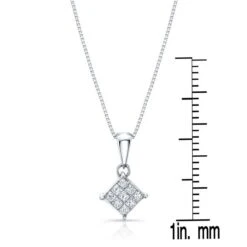 18 Karat White Gold Pendant With 9 Princess Cut Diamonds 1/4 Ctw 17 Inch Baby Box Chain