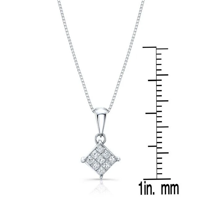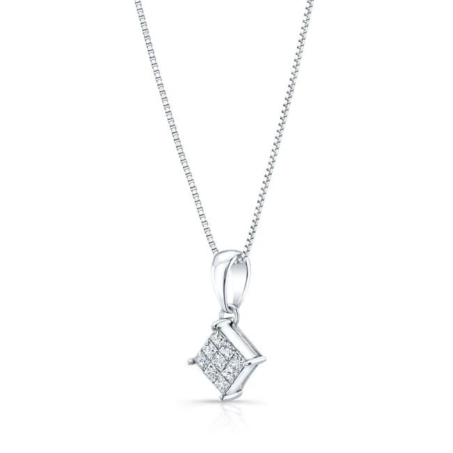 Diamond Invisible Set Princess Cut Dangle Pendant In 18k White Gold 1/4ctw (17-in Box Chain)