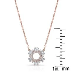 Be the first to review “Diamond Pave Circle And Tapered Baguette Starburst Necklace In 14k Rose Gold” Cancel reply