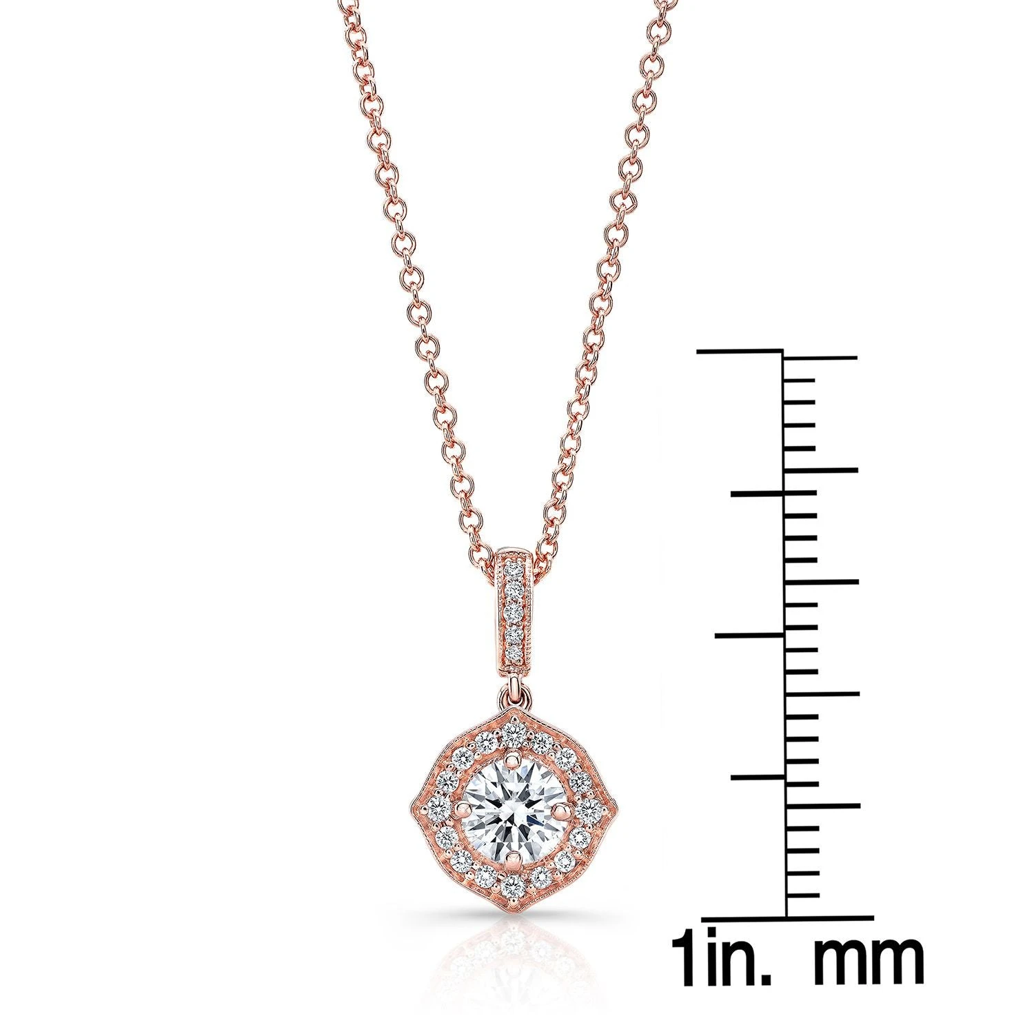 14k Rose Gold Pendant With 1 Brilliant Cut Diamond Weighing 0.50ctw And 21 Brilliant Cut Diamonds Weighing 0.10ctw Includes 16-18 Inch Adjustable Rolo Chain