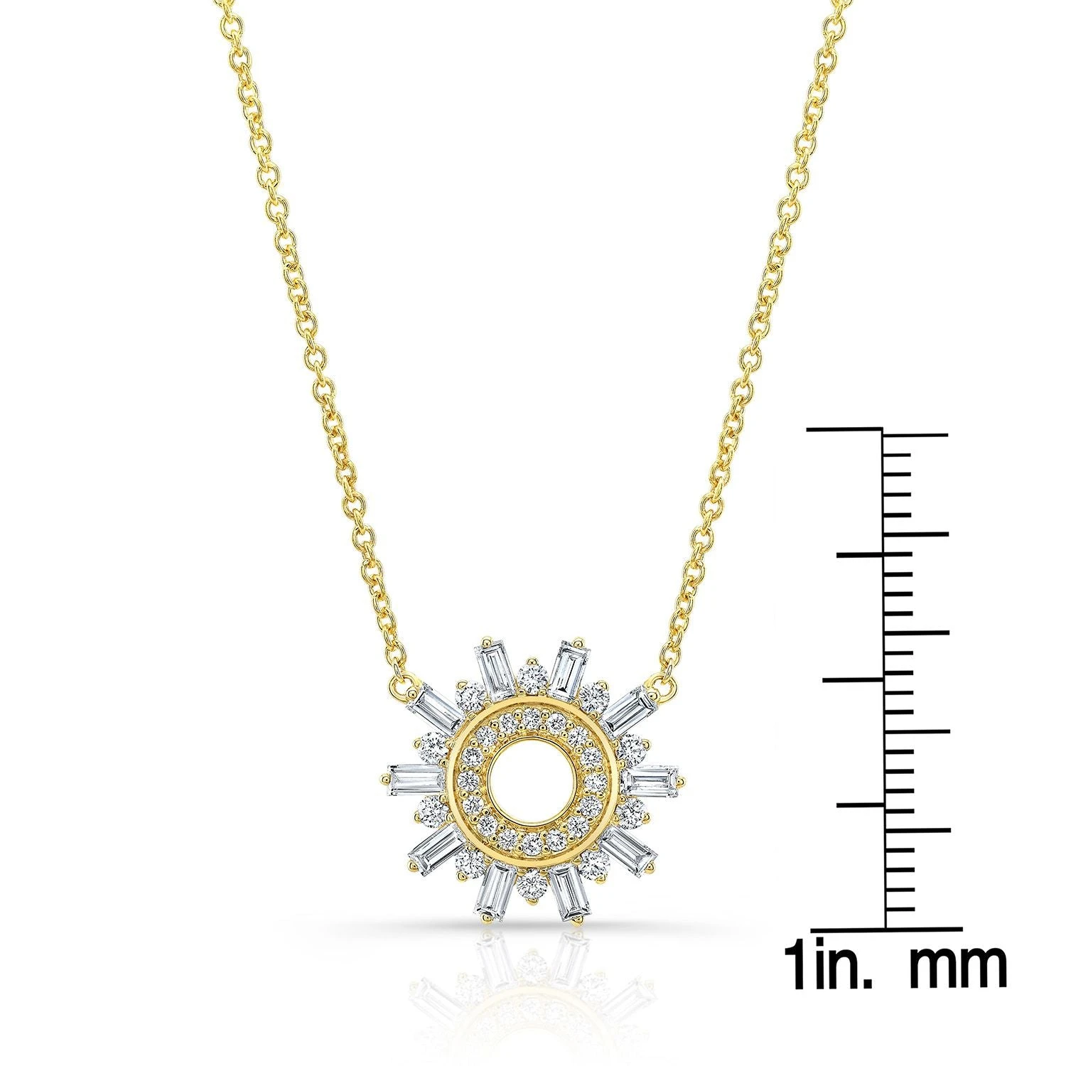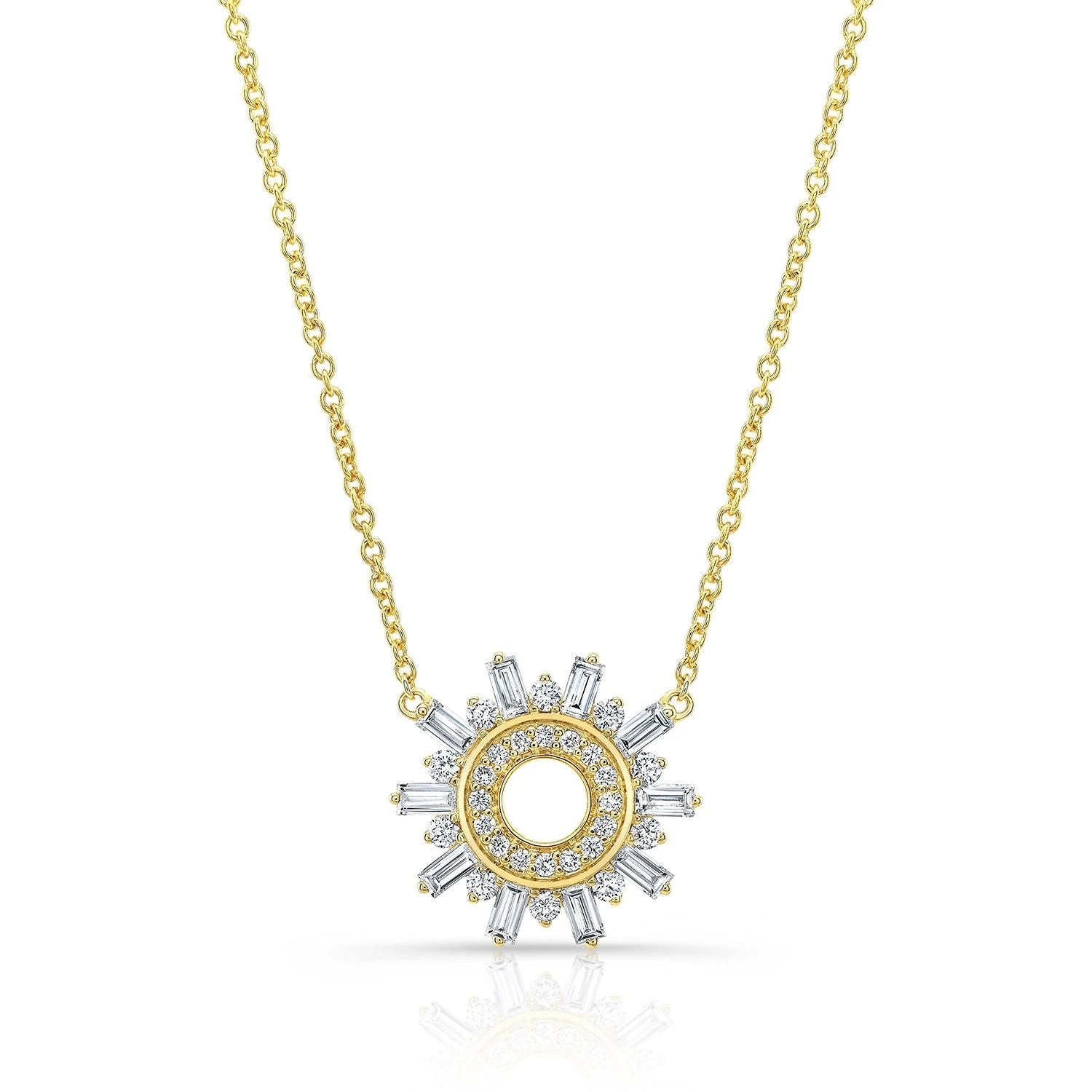 Diamond Round And Straight Baguette Starburst Necklace In 14k Yellow Gold