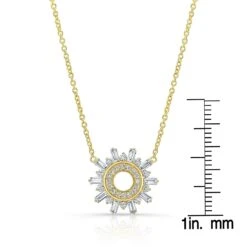 Be the first to review “Diamond Round And Straight Baguette Starburst Necklace In 14k Yellow Gold” Cancel reply
