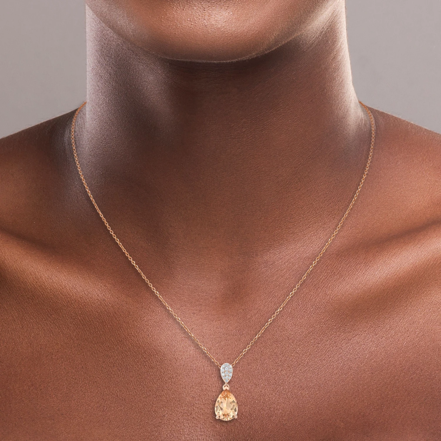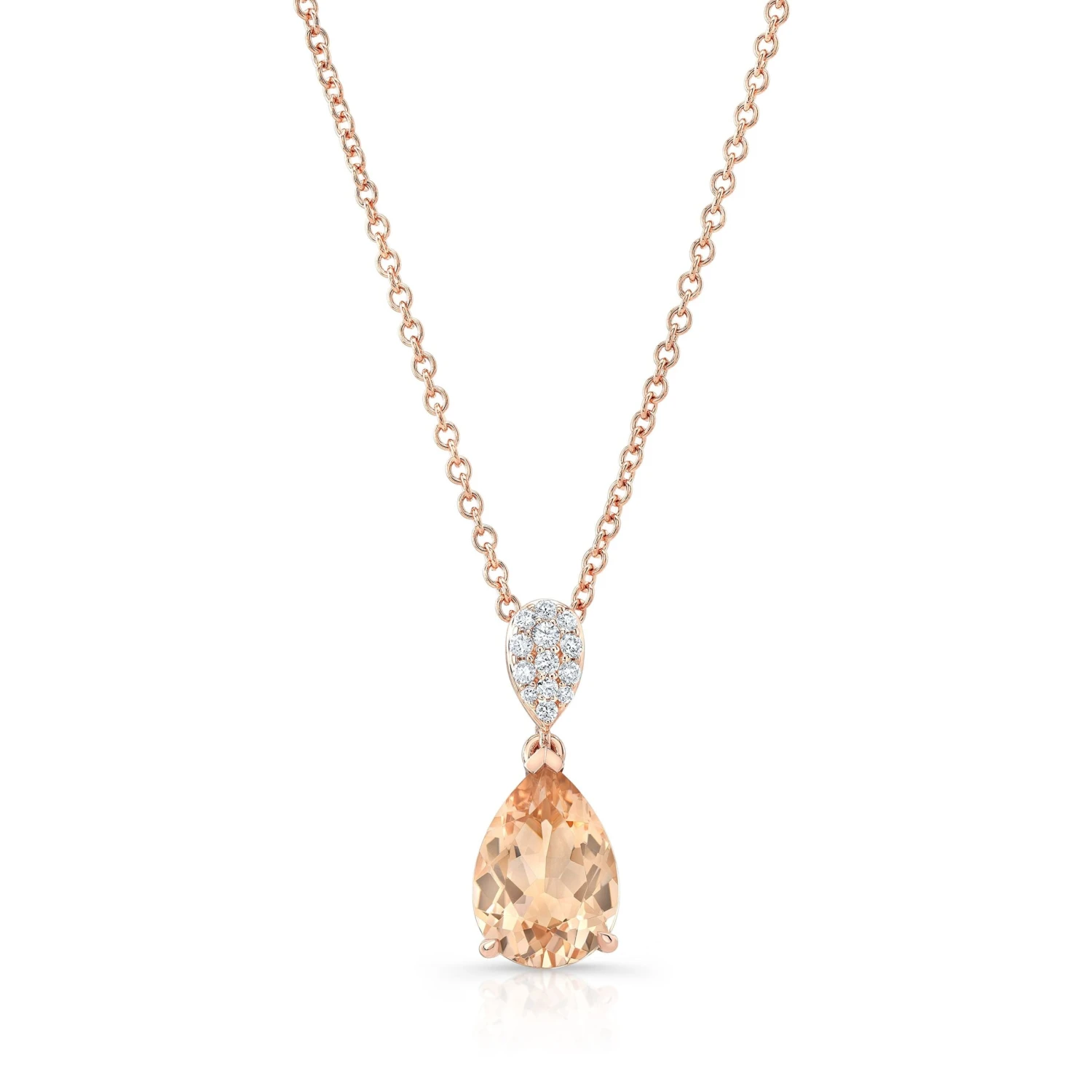 Morganite And Diamond 10x7mm Pear Shape Pendant