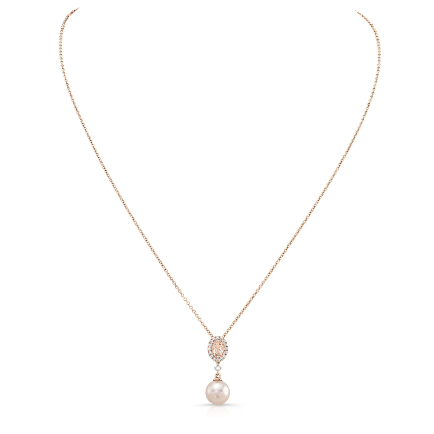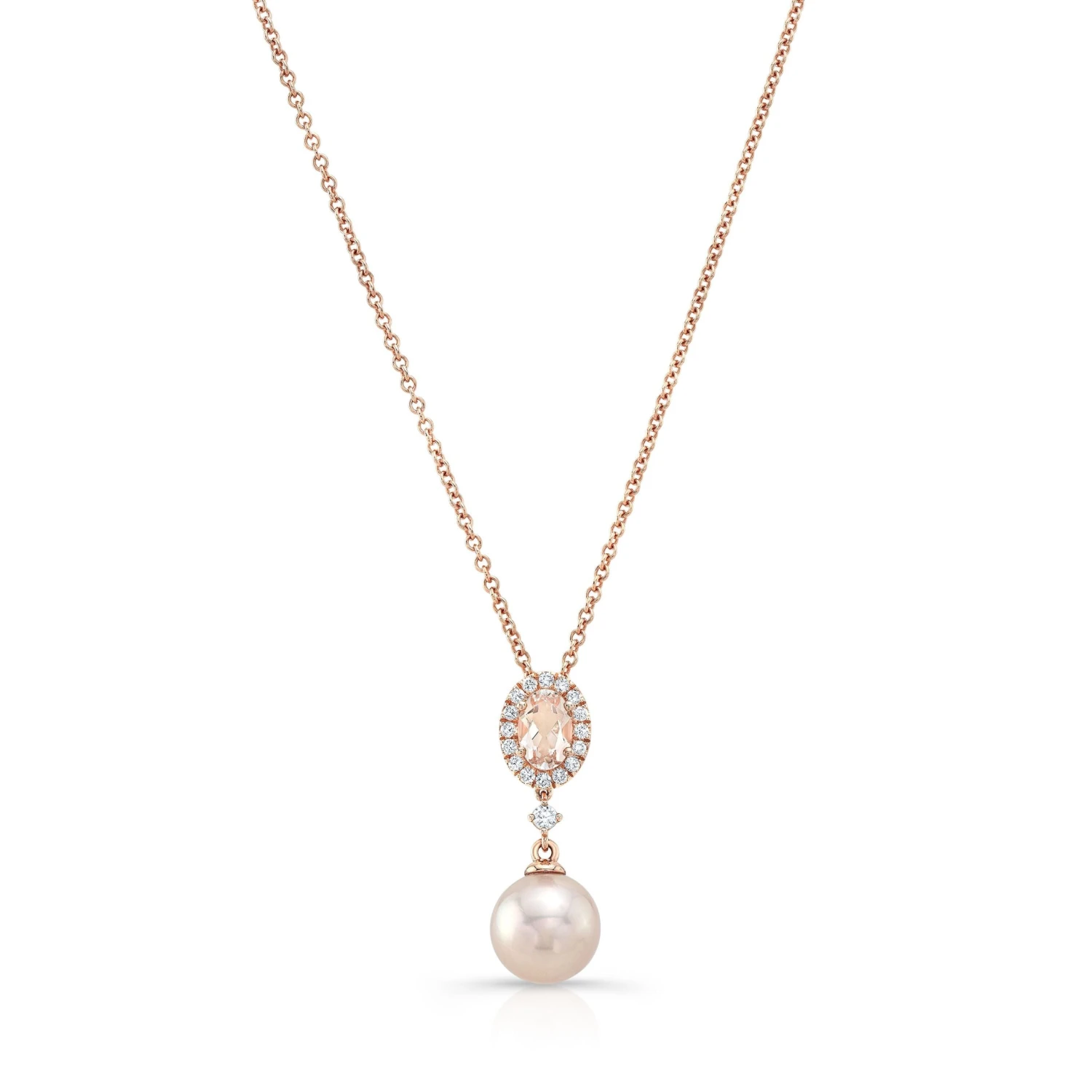 Pink Pearl, Morganite & Diamond Pendant 14k Rose Gold