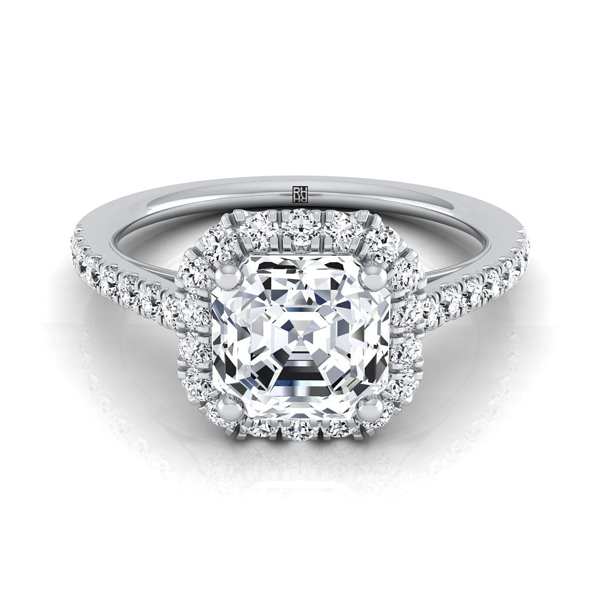 Platinum Asscher Cut Diamond Petite Halo French Pave Engagement Ring -3/8ctw